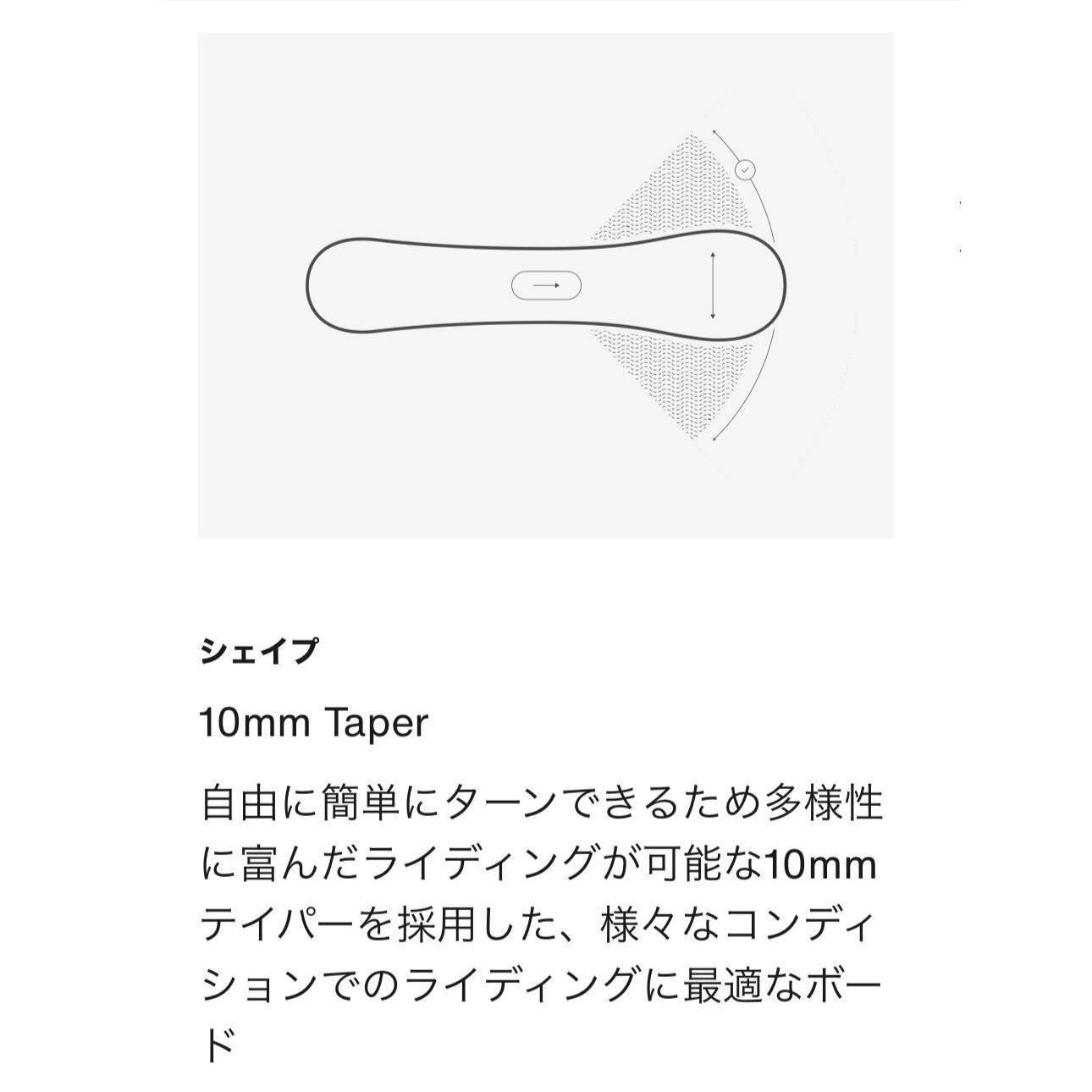 自由に簡単にターンができるため多様性に富んだライディングが可能な10mmテイパーを採用した、様々なコンディションでのライディングに最適なボード