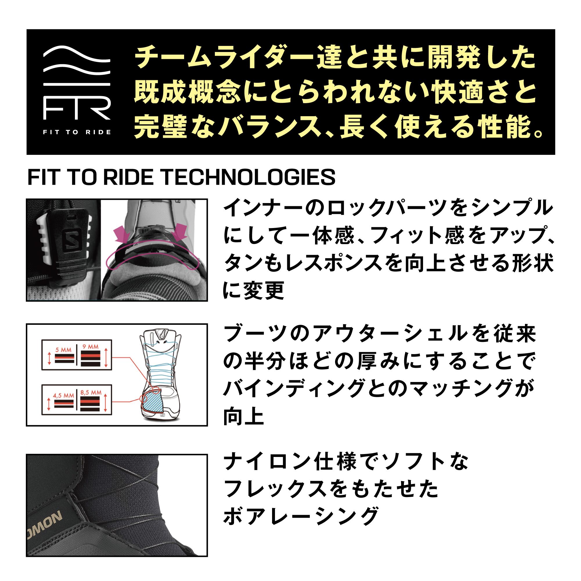 CONSTRUCTION:20%以上のリサイクル素材をライナーからアッパ ーに至るまで使用し、フィットトゥライド構造を採用したこのブーツは長く使える耐久性を提供します。