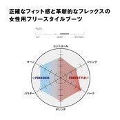 正確なフィット感とプログレッシブフレックスを提供するKiana Dual BOA®はフリースタイルなライディング性能に特化したブーツです。ミディアムフレックスのブーツにゾーンごとの締め分けを採用し、プレシジョンハーネスが踵の浮きをおさえることで、心地の良いフィット感を提供します。フィットトゥライド構造を採用することで、軽量でありながら高い耐久性を提供し、足元にはグリップ力と衝撃吸収力を提供します。