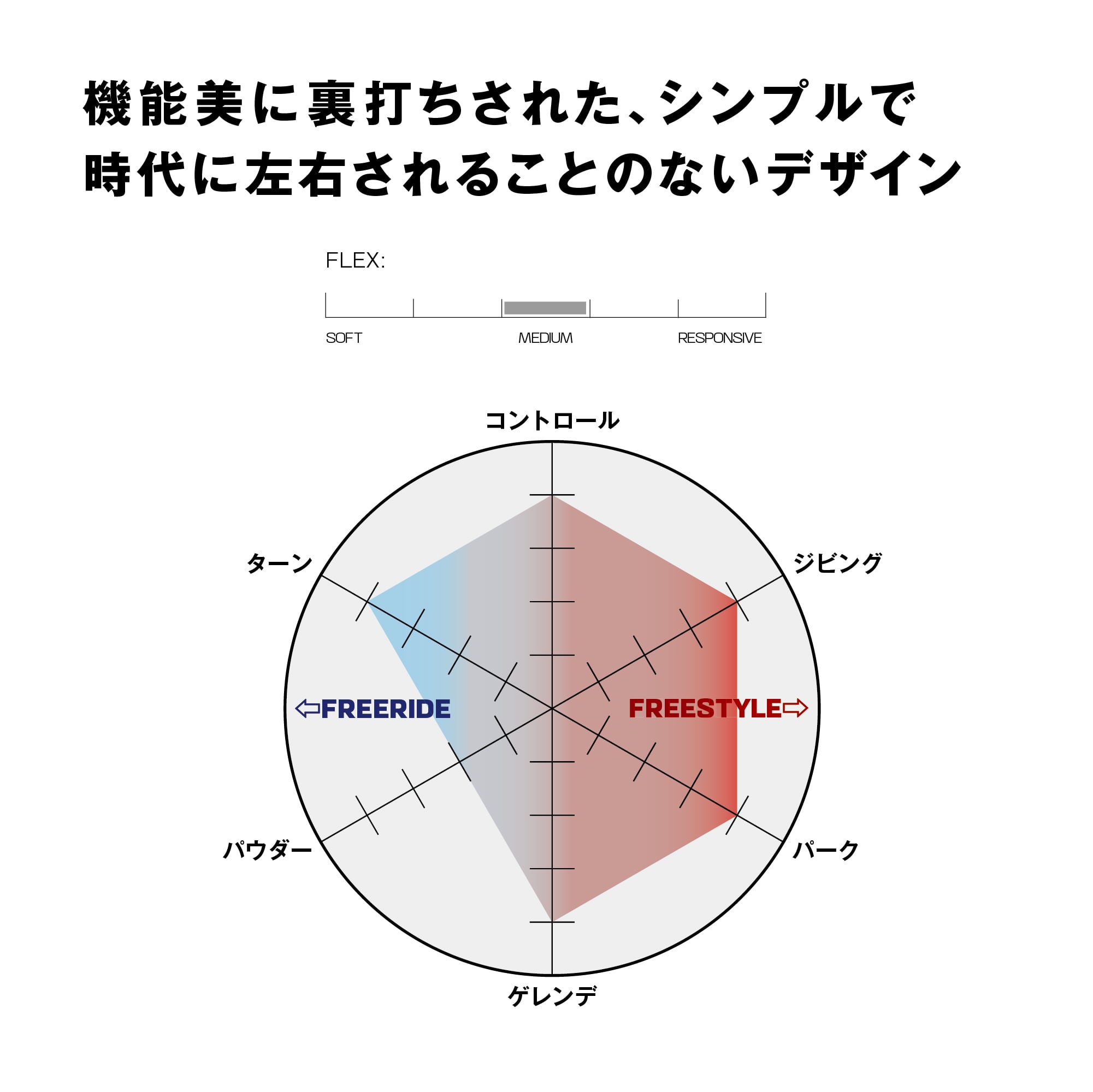 Canted Footbed : 2.5°の傾斜をつけることで、ポップパワーとエッジコントロールが可能になるフットベッドを採用。膝への負担が少なく、ボードフィールを損なわない。