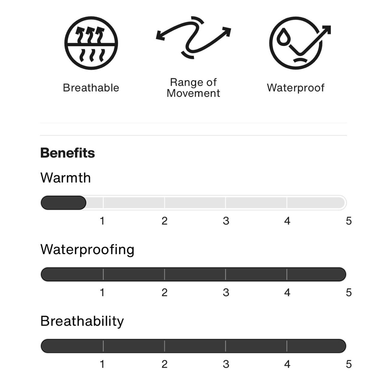 動きを妨げない立体裁断のシルエット、補強ステッチ、耐水ジップなど、天候にかかわらずハードなミッションを支える要素を装備したビブ。
