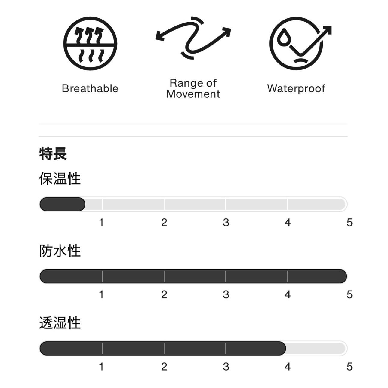 メッシュライナーの付いた脇のベント、高い動作性を発揮する脇下のガセット、調節可能なフード、耐水ジップなどを配し、リゾートでもバックカントリーでも毎日をスムーズに過ごせます。