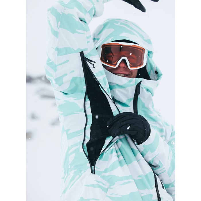 メッシュライナーの付いた脇のベント、高い動作性を発揮する脇下のガセット、調節可能なフード、耐水ジップなどを配し、リゾートでもバックカントリーでも毎日をスムーズに過ごせます。