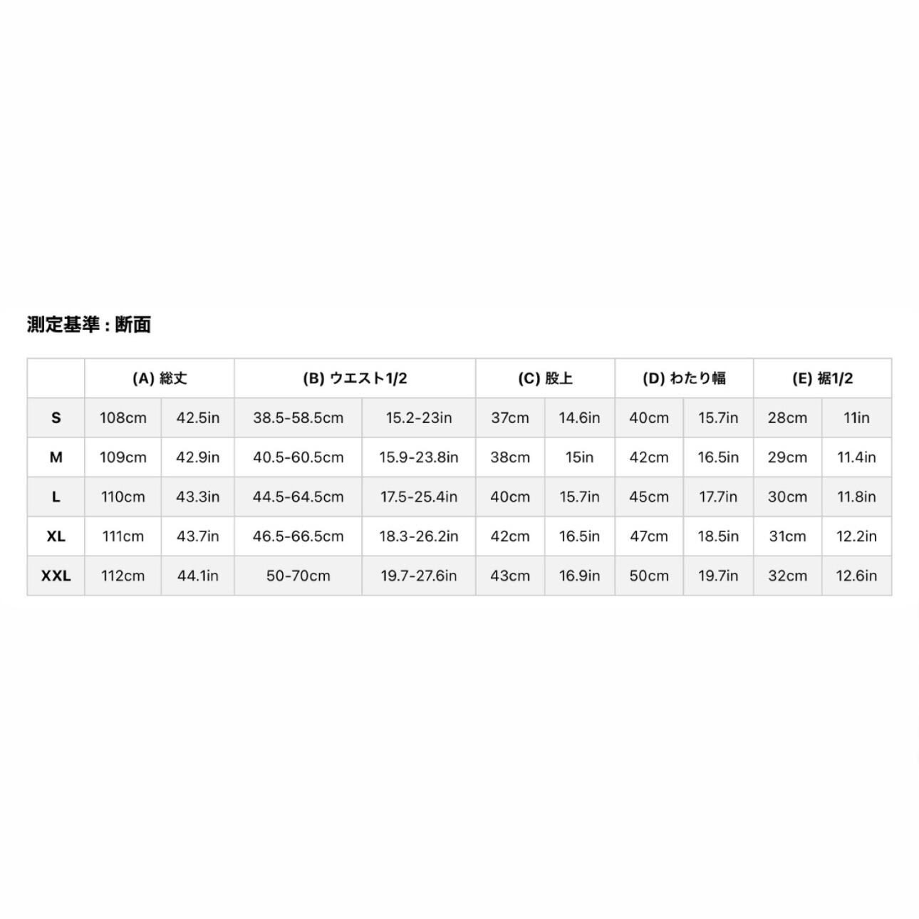 M : Length 109cm/ Waist 40.5-60.5cm/ Crotch 38cm/ Thigh 42cm/ Hem 29cm