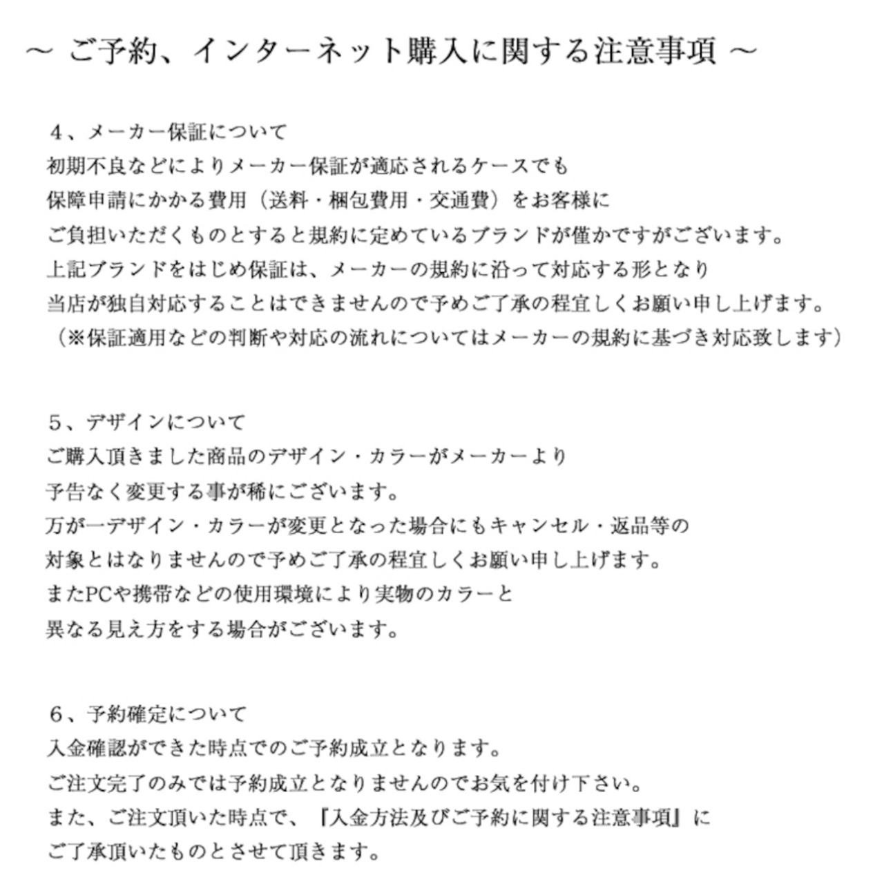 〜 Important Notes Regarding Reservations and Online Purchases 〜