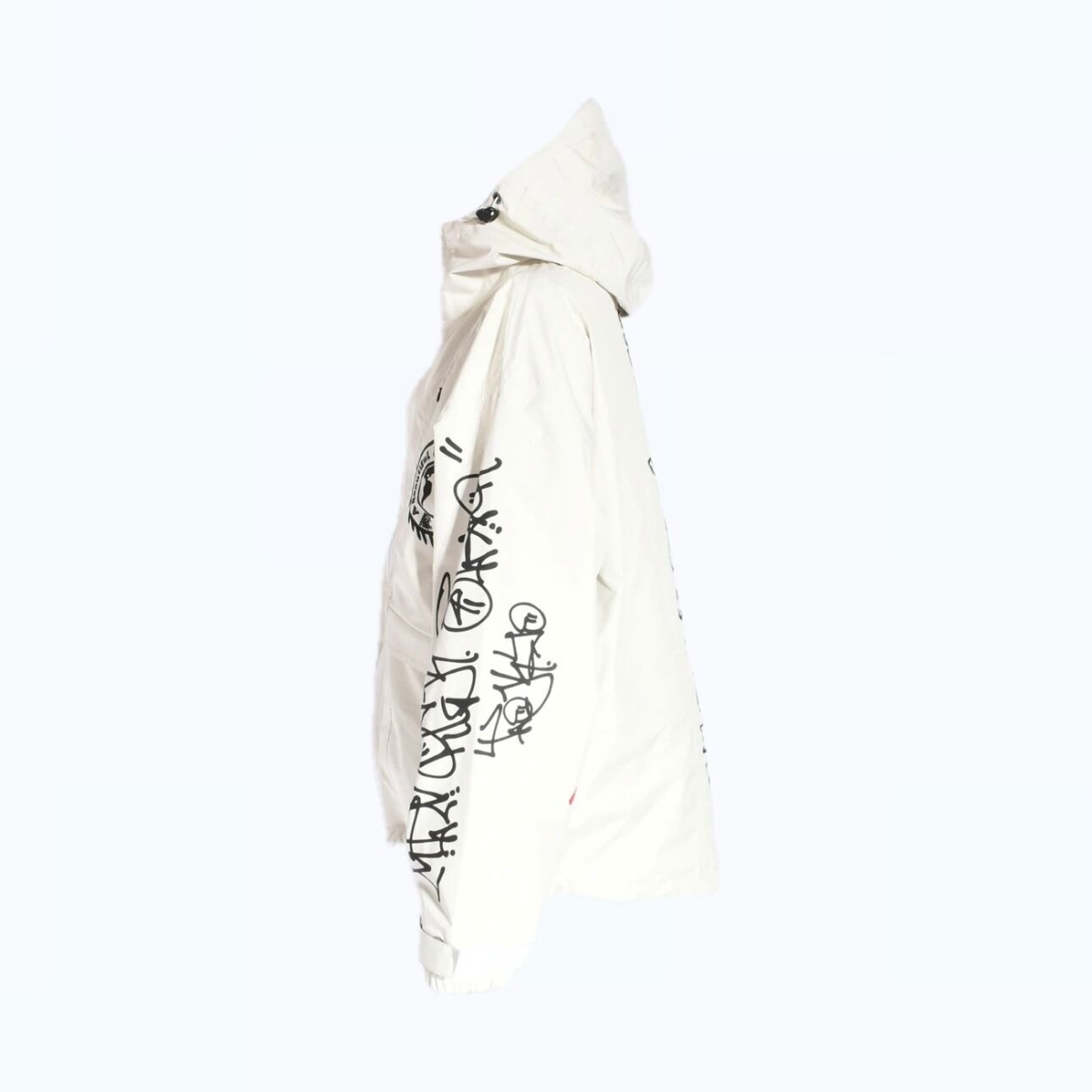生地にはPREVENT-EXリサイクルFABRICを使用、耐水圧20,000mm、透湿性12,000g/㎡/24h、生地表面には超撥水加工を施し、水弾きを更に向上させています。