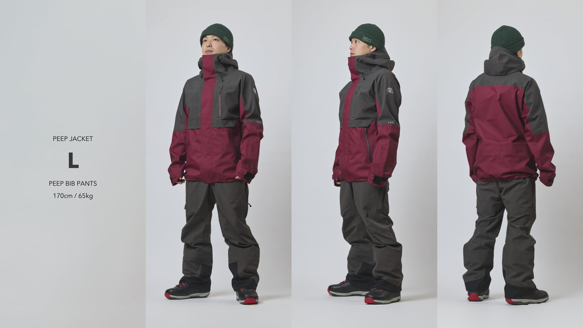 アンファッジスノーウェア創立当時からの定番ビブパンツ「ピープビブパンツ」です。