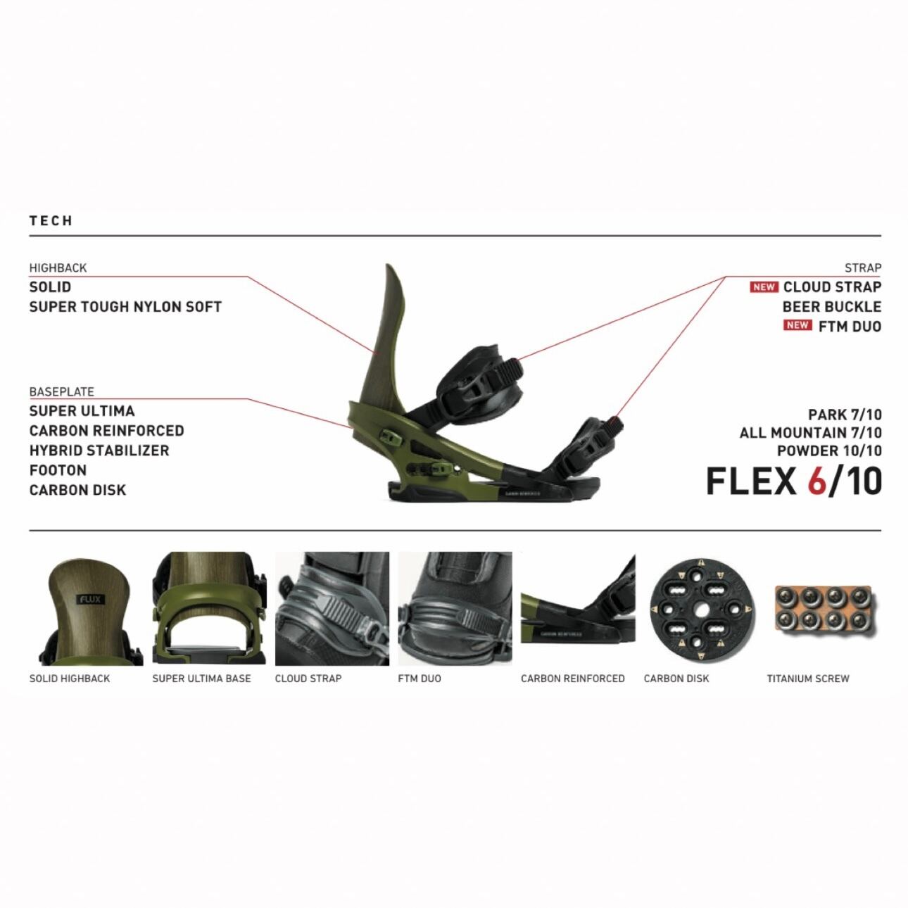 バックカントリーでのハイクアップ時の軽さと、急な雪質変化やスティーブな斜面でも対応しながらも、気持ちの良いターンを切れる。そんなバインディングを目指してライダーの五十嵐 黎の意見を参考にしながら製作されました。基本となるモデルはSR。そこに軽さとレスポンスを追求すべく、ベースプレートと取付けディスクにカーボンを、取付けビスはチタンを採用しました。さらに新素材採用のアンクルとトゥストラップは新たなライディングフィールを感じさせてくれます。また、通常のSRよりも薄いFootOnを採用しより雪面の状態を足裏で感じられるようにしました。カーボンブレンド特有のレスポンスとダイレクトな足裏感により、通常のSRよりもスティーブな斜面や切れ味するどいカービングを求める方にむけたバインディングに仕上がっています。