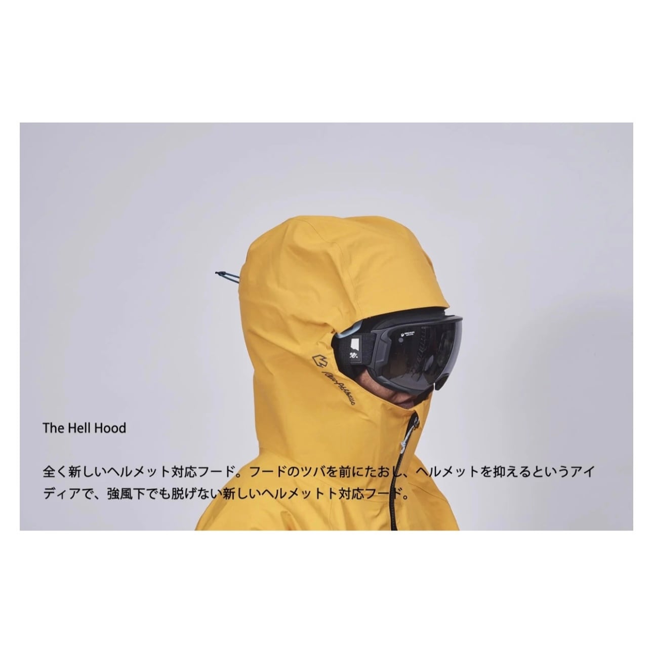 『ゲレンデユースやカービングをメインに、バックカントリーまでカバーする超軽量GORE-TEX 3Lジャケット。幅が広く、少し丈が短い、カービングの動きを考慮した専用のシルエットで、動きやすくて疲れません。』
