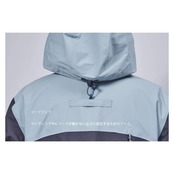 フードの前の襟部分を自立させることにより、顔に当たる風を減らし、ウェア内への風の侵入を大幅に軽減。