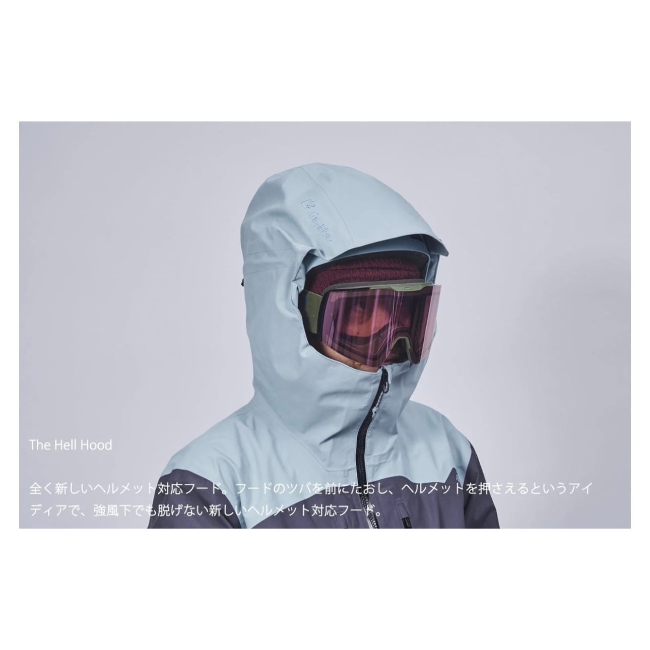 ・new! 強風下でも脱げない、ヘルメット対応の新しい「The Hell Hood」採用。