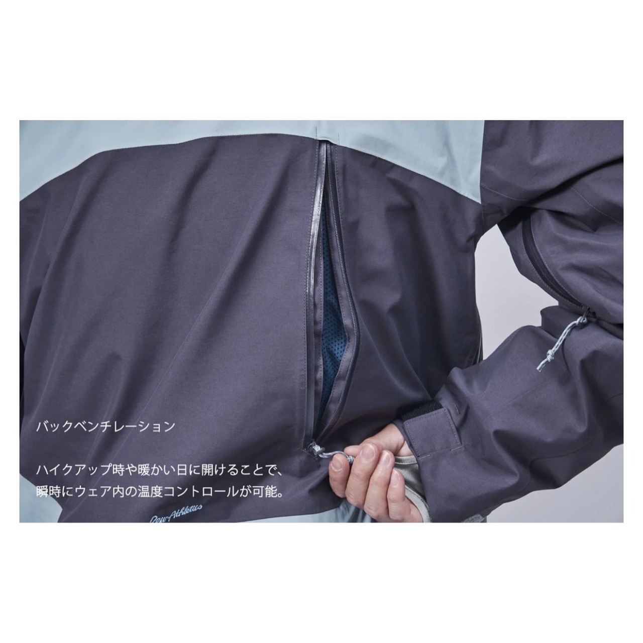 ハイクアップ時や暖かい日に開けることで、瞬時にウェア内の温度コントロールが可能。