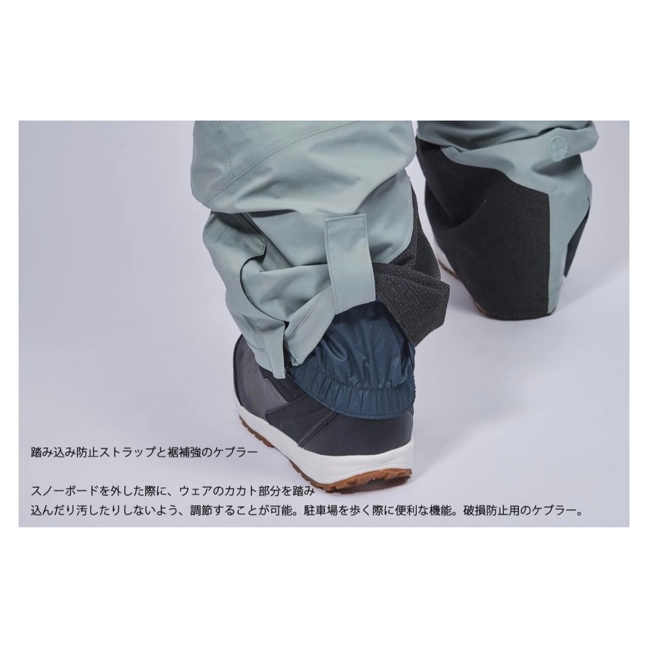 スノーボードを外した際に、ウェアのカカト部分を踏み込んだり汚したりしないよう、調節することが可能。駐車場を歩く際に便利な機能。破損防止用のケブラー。